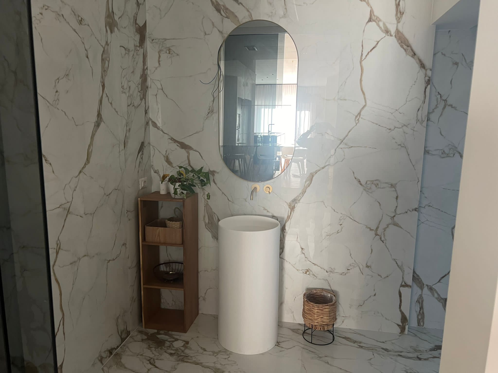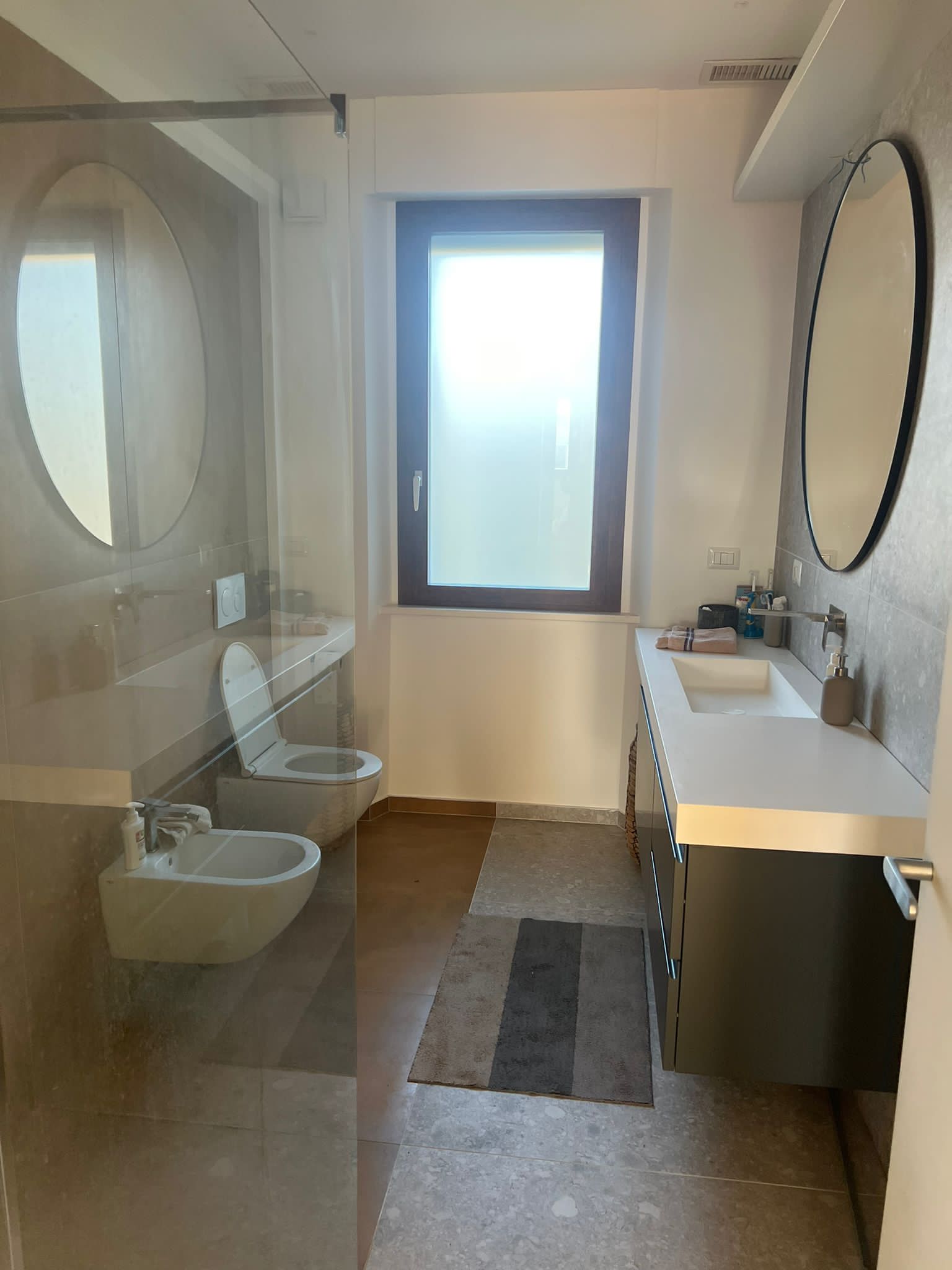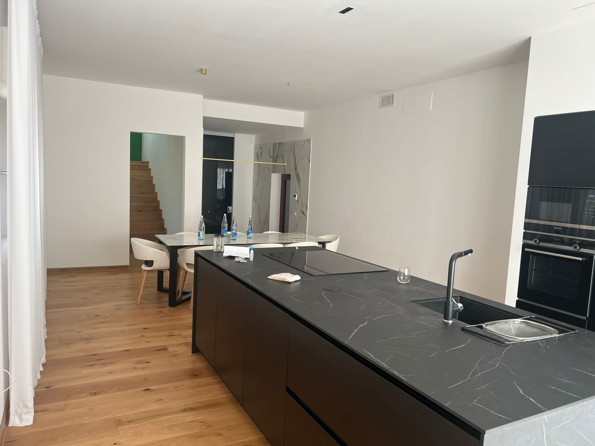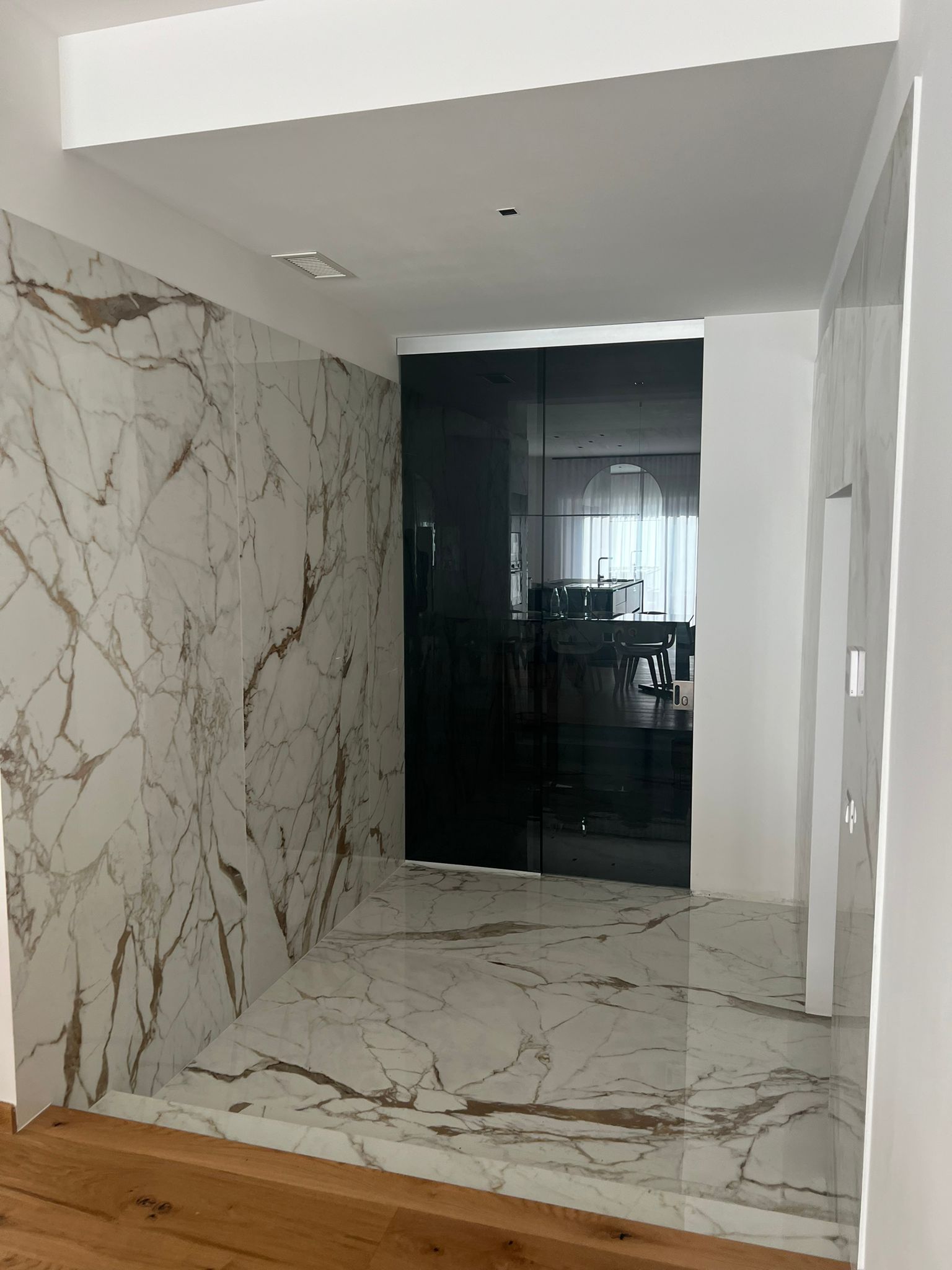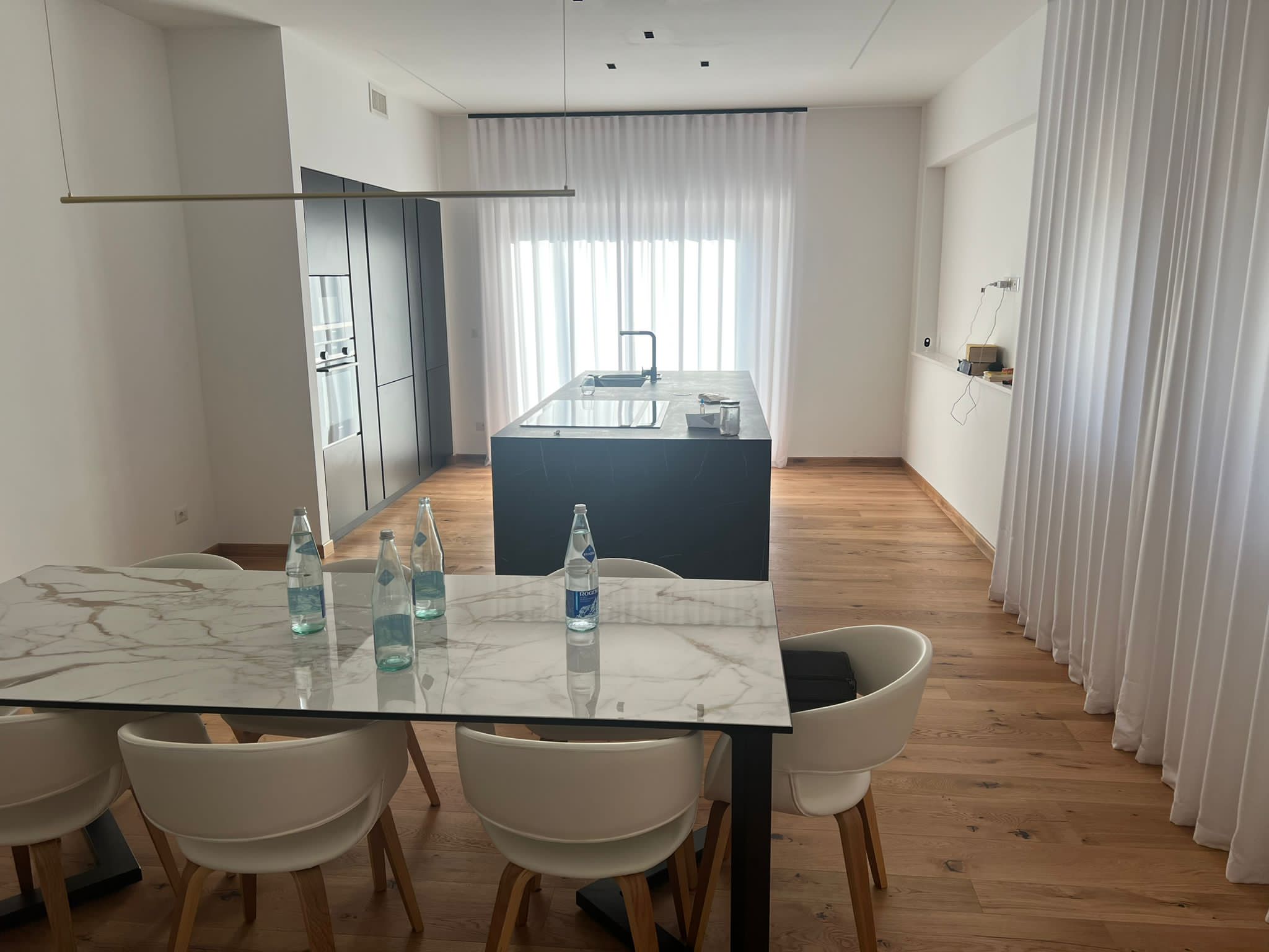 Particolare attenzione è stata dedicata alle finiture interne, selezionando materiali di pregio come pavimenti in parquet naturale, rivestimenti in gres porcellanato di alta qualità e serramenti con profili in legno-alluminio. L’illuminazione è stata studiata per valorizzare gli ambienti con soluzioni a LED integrate, mentre gli arredi su misura e i dettagli in metallo e vetro conferiscono un’eleganza moderna e raffinata. L’intervento ha consentito una significativa riduzione dei consumi energetici e un miglioramento della classe energetica dell’edificio, garantendo al contempo un alto livello di estetica e funzionalità.